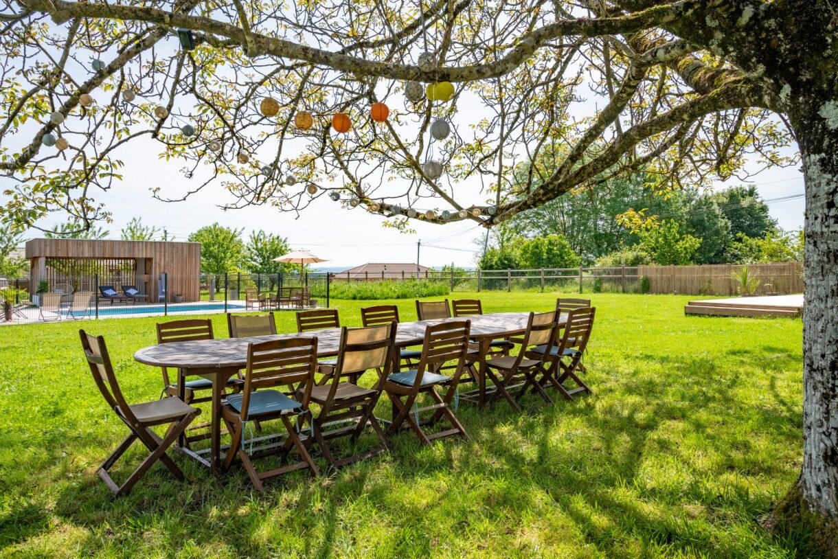 Vous profiterez de sa piscine chauffée & privée et des différents espaces extérieurs dans le grand jardin. Dehors un vieil et immense noyer offre l'ombre sous laquelle déjeuner ou se retrouver en été. Pendant les mois les plus froids, vous pouvez vous installer confortablement devant le poêle à bois pour prendre un délicieux apéritif et admirer le magnifique ciel étoilé.