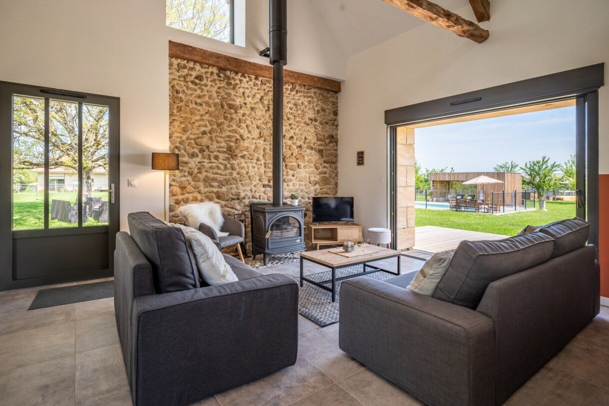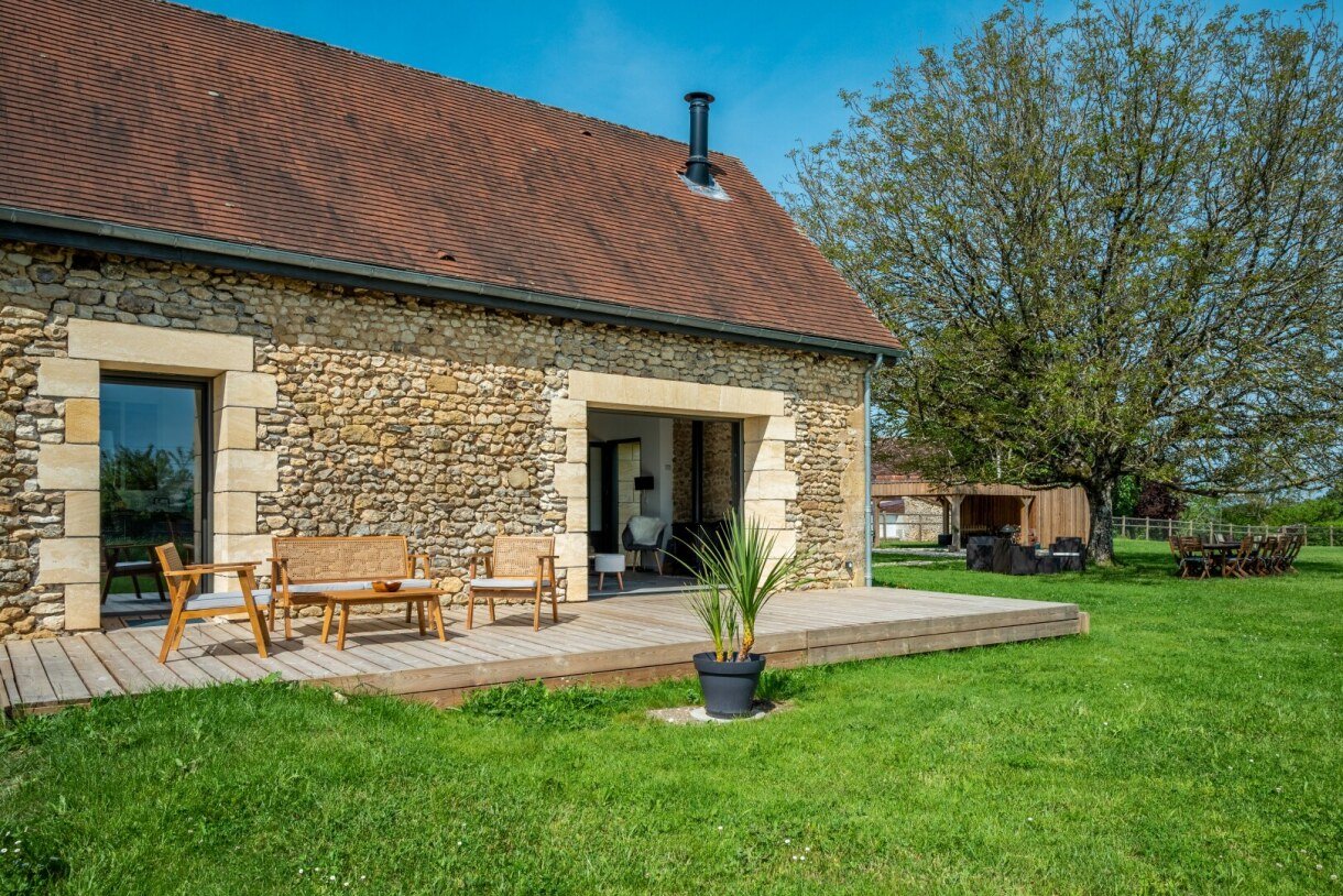 Bienvenue dans La Grange des Gouyats, une ancien grange périgourdine tranformée en gîte pour 9 personnes de 150m² mêlant l'ancien et le neuf.