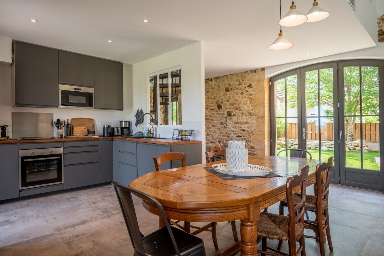 L'ancienne grange de 60m² abrite l'espace de vie :