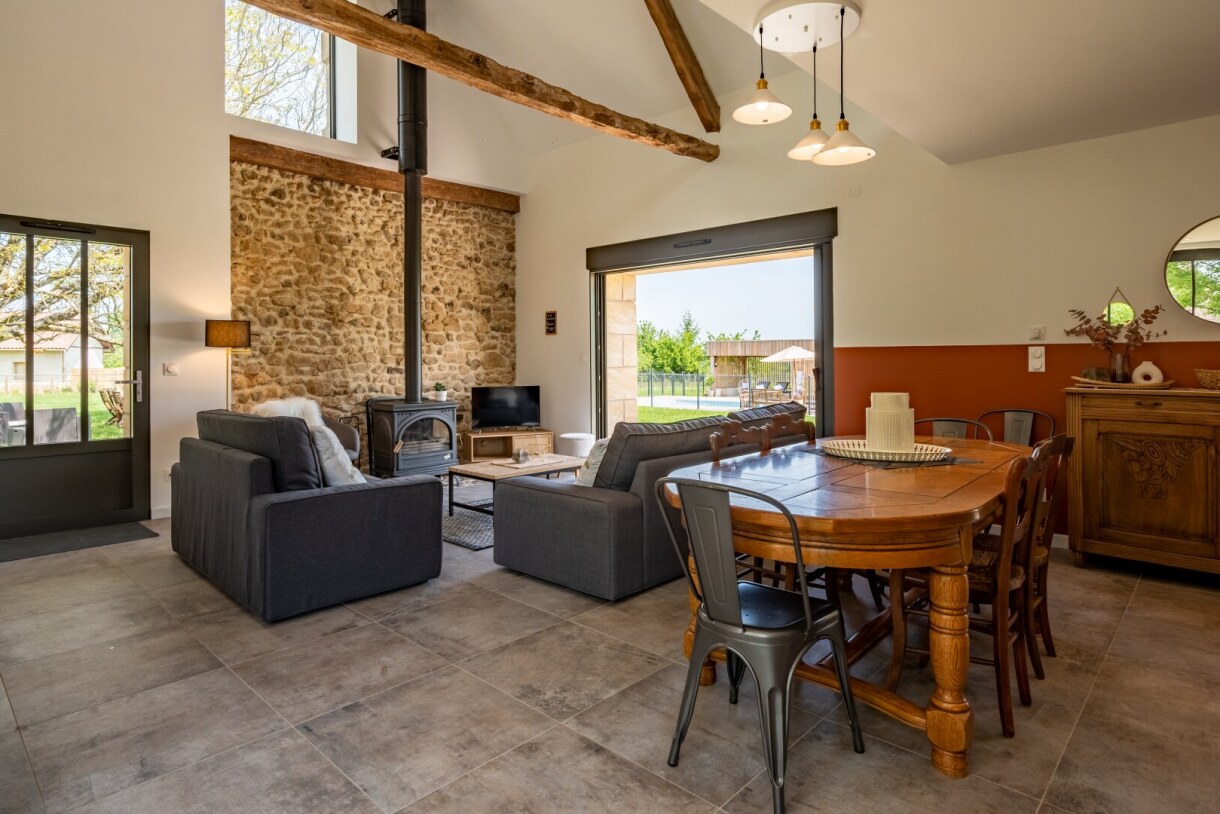 Bienvenue dans notre grange périgourdine tranformée en gîte pour 9 personnes de 150m² mêlant l'ancien et le neuf. L'ambiance douce et chaleureuse saura vous apporter le bien-être et repos auquel vous aspirez en vacances. Vous profiterez de sa piscine chauffée & privée et des différents espaces extérieurs.